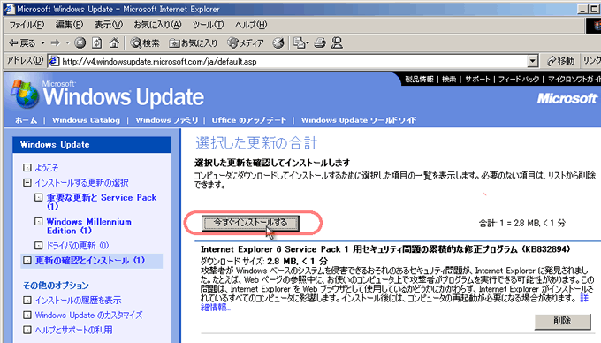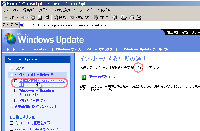 - 「重要な更新とService Pack」が1つでもあれば、クリックして下さい。