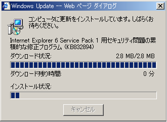 - このようなウインドウが表示されますのでお待ちください。ダウンロードとインストールが自動で行なわれます。