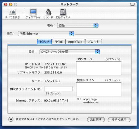 3. 「TCP/IP」の設定を「DHCPサーバを参照」を選択してください。