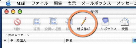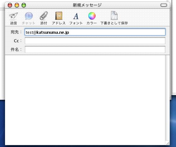 5. テストメールを送信してみましょう。新規作成をクリックし、宛先に「test@katsunuma.ne.jp」と入力して送信をクリックしてください。
