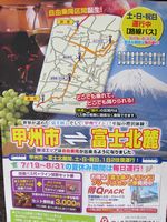 あちらこちら巡りたいご予定の方 | ![]() 甲州市と富士山を結ぶ「どこでも乗れる・どこでも降りられる」路線バスの開通です。釈迦堂東口の信号で下車されると目の前です。私が唱えているいわゆるワイン蔵通りへの開通です。 7月19日から8月31日夏休み期間は毎日運行、他の日は土・日・祝日の運行です。 これにより中央道勝沼インターからお車で、中央高速勝沼バス停から徒歩で、など幅広く山梨を楽しめるルートとして予定が組めます。お出かけください (14年7月4日) |
