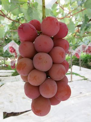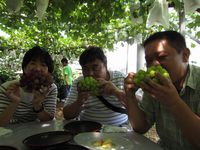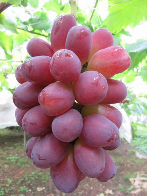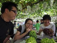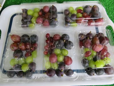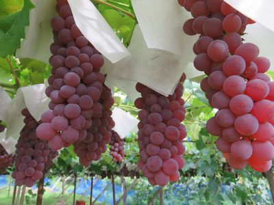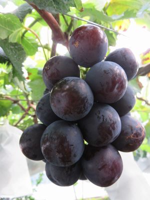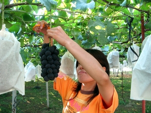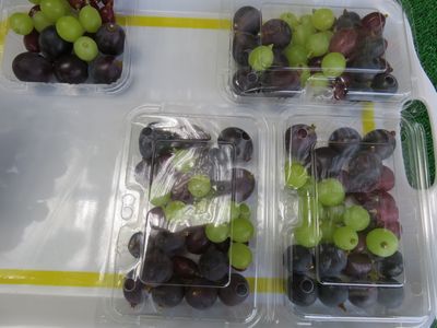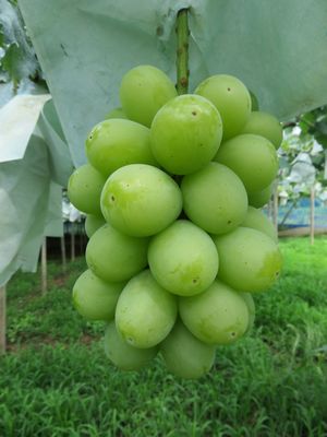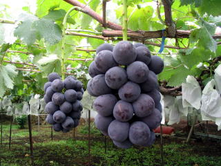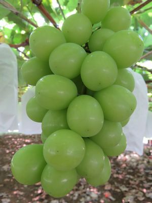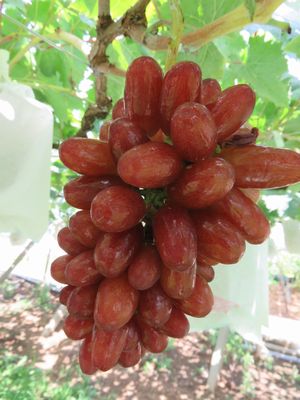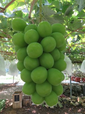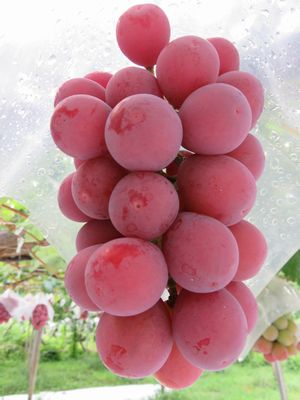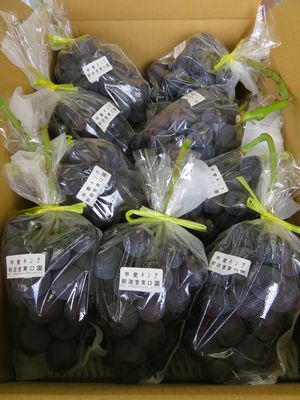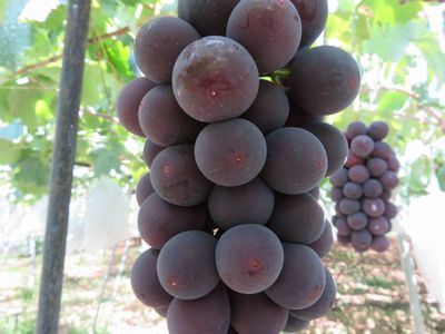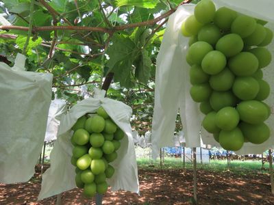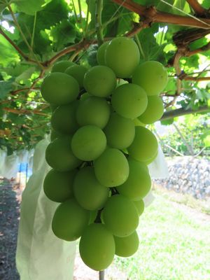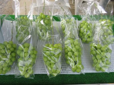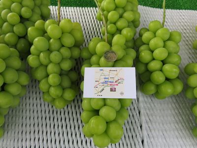 自園で栽培した販売用正品(有名フルーツ店・有名和菓子店仕様の、みすぼらしくない品・極大房)のもぎ取りとなります。 |