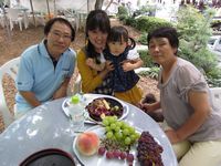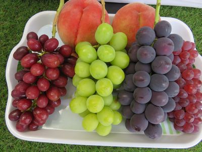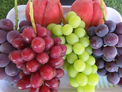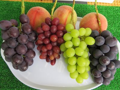 お店でもぎ取ってある桃とぶどうをお召し上がりいただきます。食べ放題ではありません。