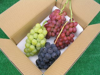 3色(黒・緑・赤)のぶどうの組み合わせ。いずれの種類も収穫時期は異なるため種類はお任せいただきます。3〜4房で2kg程度