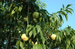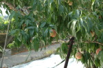 もうまったく実がなくなっている木、このようになっている木、いろいろですが、半分くらいは無くなってしまったでしょうか。今年は早いそうです(1週間くらいは)。 雨が降らないので心配ですが、甘味はしっかり載っているそうです。