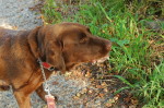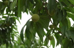 犬が落ちている実を食べると、今までとは違った音がします。どうやら種ができたようです。もう少しすると、種を丸呑みするので帰ってきてからが大変になります。 実は7〜8cmくらいになっています。