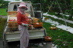 いよいよ桃の収穫が始まりました。このあたりは被害は出なかったようですが、山梨県内の桃の4割は台風被害にあったようです。 犬が1個頂き、それはおいしそうにペロリといったのを見て、農家の方がびっくりされていました。